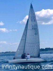 Superbe voilier 5,5m JI de 1995, architecte Philippe Durr et Sébastien Schmitt. Le bateau est plusieurs fois champion du monde sous le nom « Chlika Chlika ».