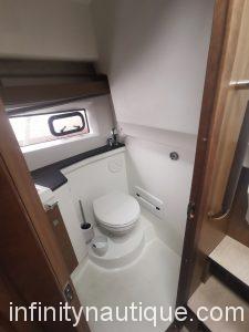 Propulseur d'étraveGuideau électriqueBain de soleilFermeture de cockpitEclairage LEDProjecteur de pontPrise direct d'eau douce au quaiFond de cockpit latté teck