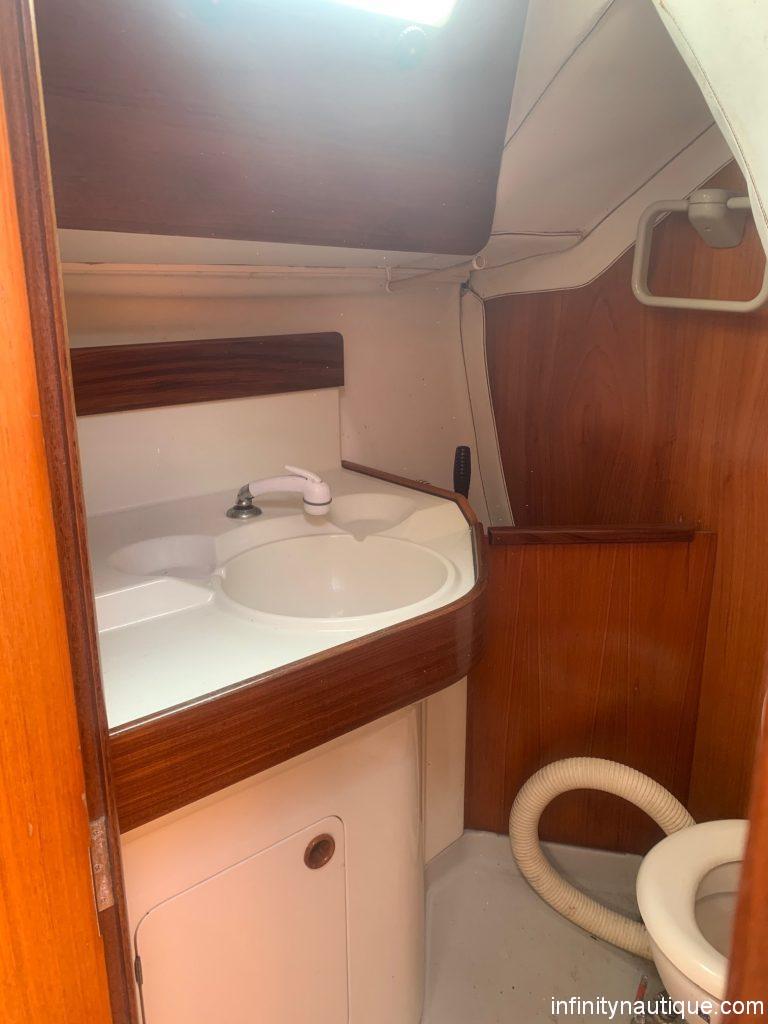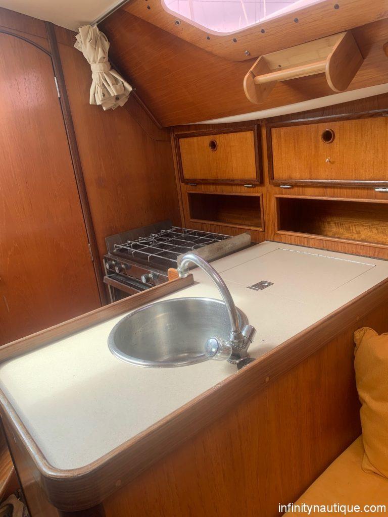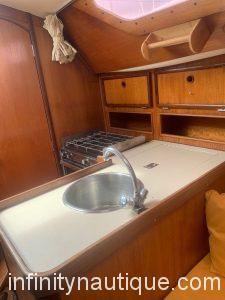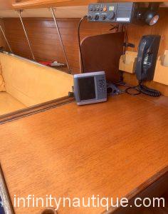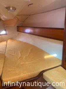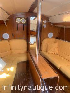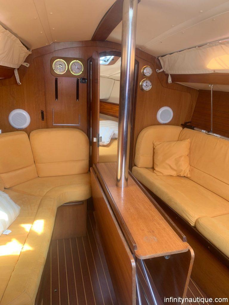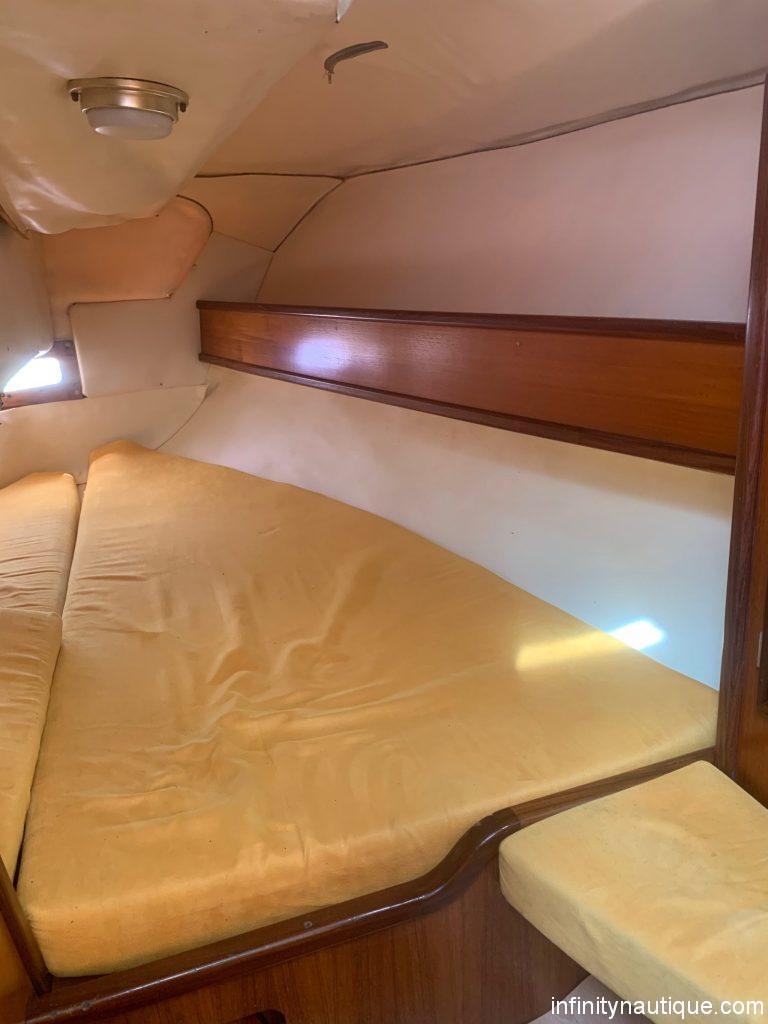 Sellerie et rideaux de 2017Table de carré pliante (2 battants)Prévoir changement vaigrage cabine avant2 CabinesCuisine en LSalle d'eau + wc marin (pompe changée en 2018)