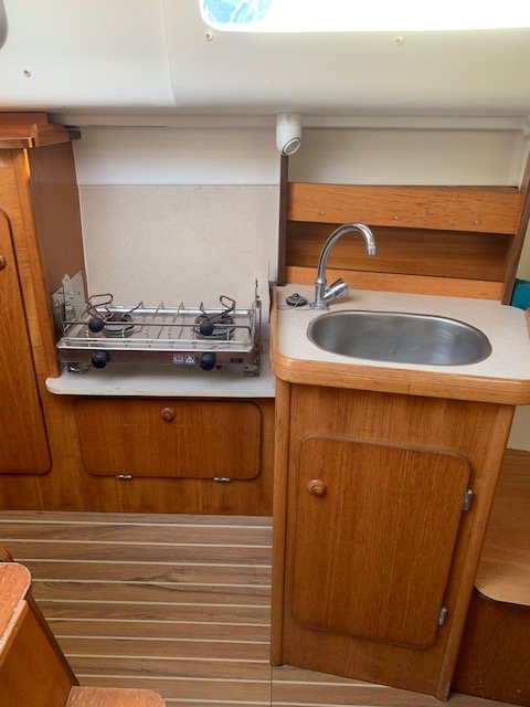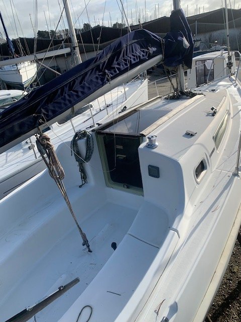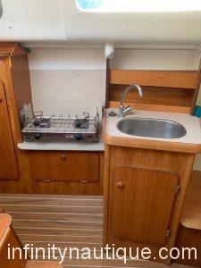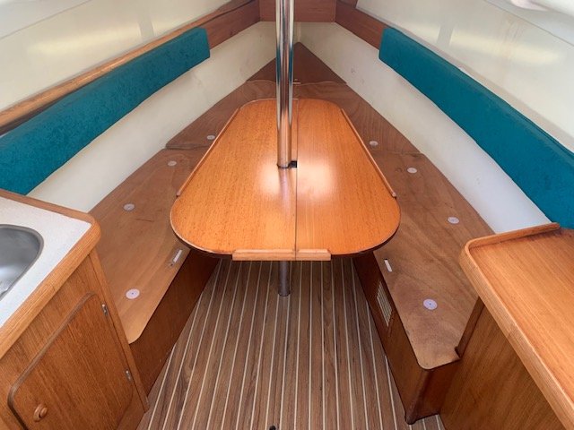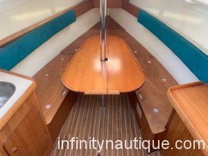 Sa taille contenue et son roof très spacieux en font le bateau idéal pour le cabotage ( 5 couchages dont 1 cabine double).