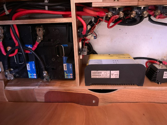 Prise de quai 220v1 batteries de service1 batterie de démarrage moteurEau sous spressionEau chaude / eau froideChargeur de batterie