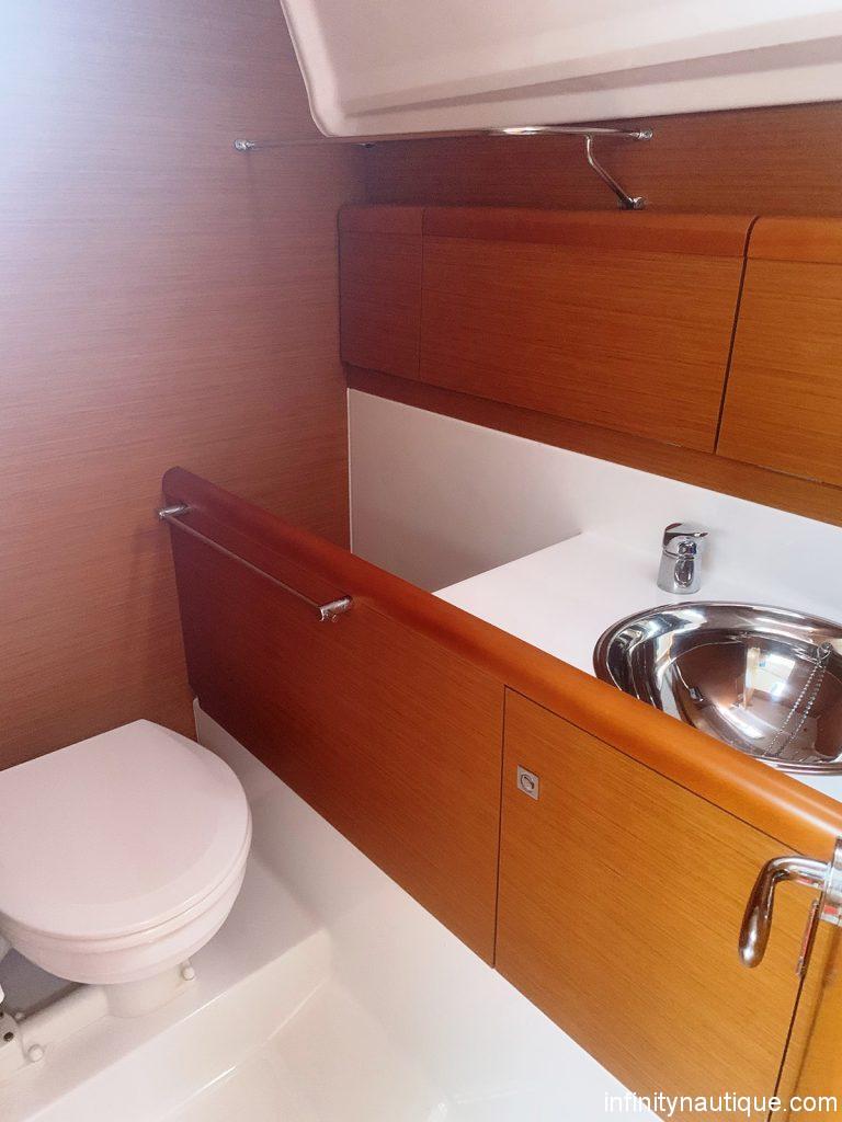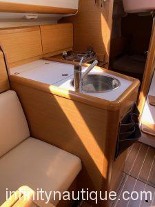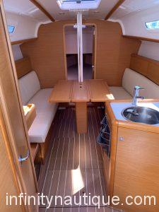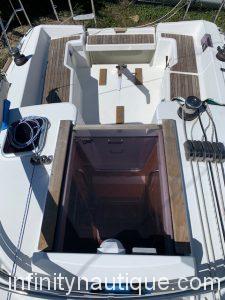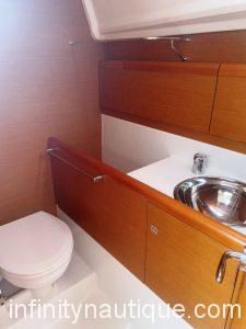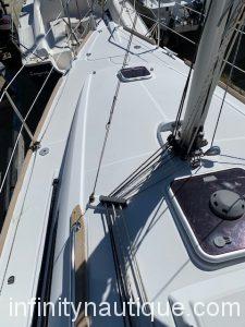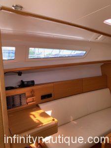 C’est un bateau marin, performant par tous les temps (plan Marc Lombard), agréable à vivre au port comme au mouillage avec un confort intérieur de premier ordre et une tres bonne hauteur sous barrot dans toutes les cabines.