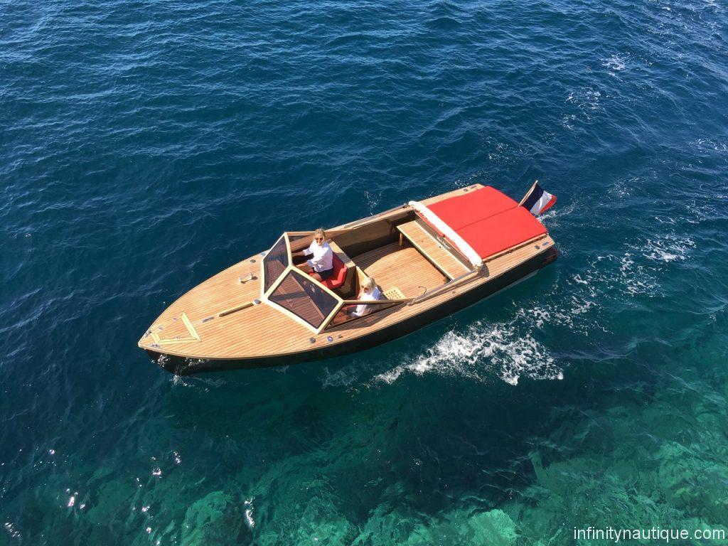 Ravissant canot automobile chic et vintage qui rappelle les Utilities Boats Américains des années 30.
