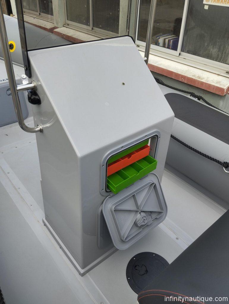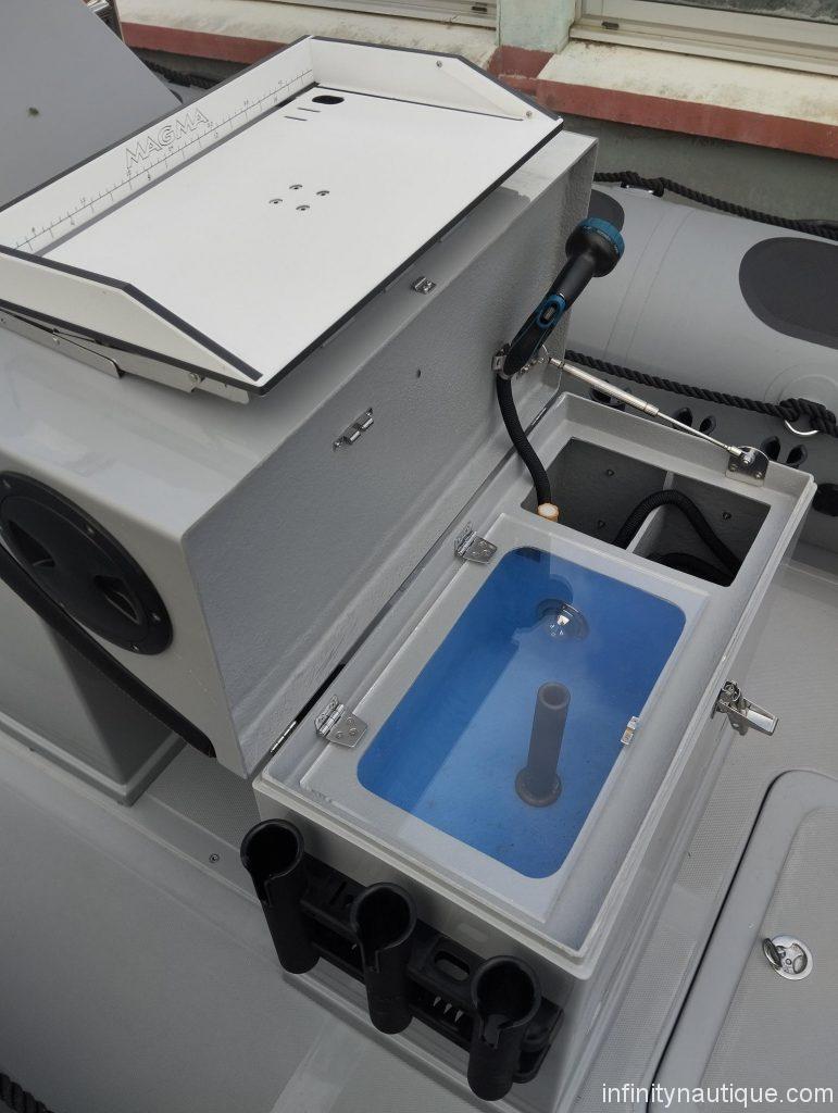 Console S-600 GFAppuis dos Fish2 Viviers avec pompe à eauPompe de rinçageBoitier Fishing Box2 aires de travail à l'arrière2 plans de travailDavier d'étrave en fibre avec guide6 portes cannesSiège à l'arrière rabattableÉquipements - Mât / Gréement / Voiles
